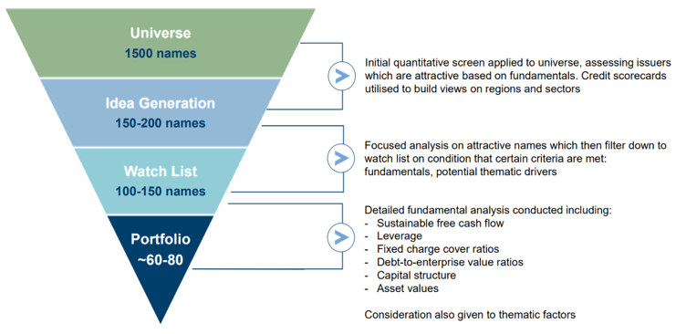 To build his portfolio, Mike begins with a broad list of around 1,500 bonds. He then narrows it down using quantitative metrics to find about 150-200 promising candidates. From there, he conducts a detailed analysis to select 100-150 bonds with strong fundamentals and favourable macroeconomic trends. He also considers broader factors like consumer trends and regulations.