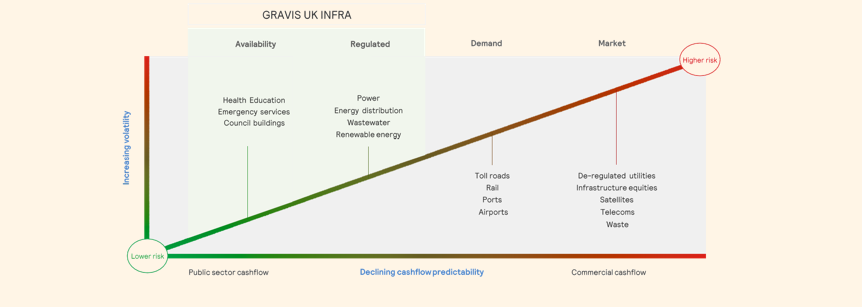 - Availability-based assets, such as hospitals, which receive revenue through guaranteed payments which are often backed by the UK government, and regardless of usage levels.