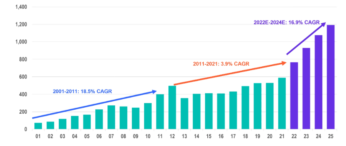 Source: Bloomberg; Nifty 50 EPS estimates. The NIFTY 50 is a benchmark Indian stock market index that represents the weighted average of 50 of the largest Indian companies listed on the National Stock Exchange. Indexes are unmanaged and one cannot directly invest in them. Past performance is not an indicator or a guarantee of future results. [5]