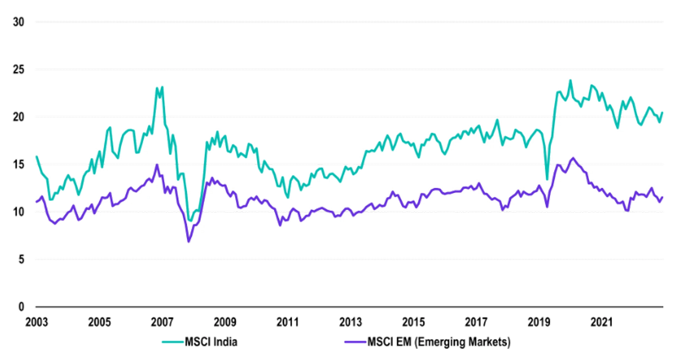MSCI India vs MSCI EM Price/Earnings